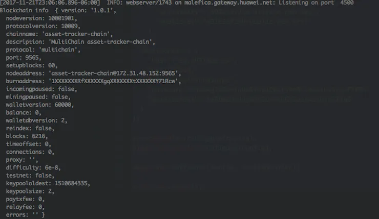 });Once the rule is raised, that will be recorded in the blockchain and sent to the dynamo table: